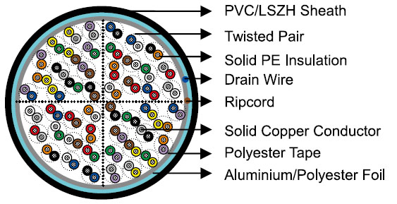 The pairs are cabled together in layers of 12, 13 & 25 pair unit to form the cable core. Units are identified by colour coded binders