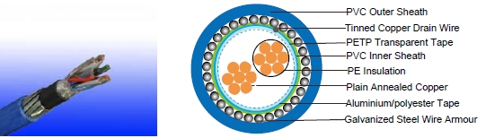 PE Insulated, PVC Sheathed & Overall Screened, Armoured Instrumentation Cables (Single Pair)