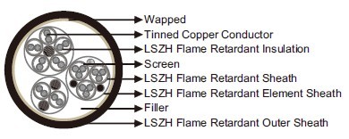 form a pair. Every pair is screened and sheathed. Pairs are stranded with fillers and covered with an element sheath.